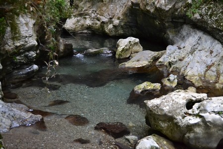 Da qui si entra con una stretta scaletta in pietra e si oltrepassa il profondo e spettacolare canyon scavato dal fiume. E sembra di essere catapultati in un “altro mondo”: il verde brillante dei muschi e delle foglie, la limpidezza delle acque, i massi sospesi, fanno pensare a paesaggi neozelandesi, perfetti per girare scene da film.