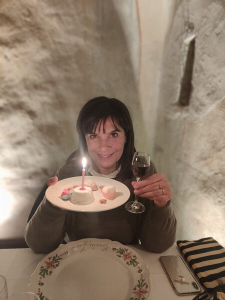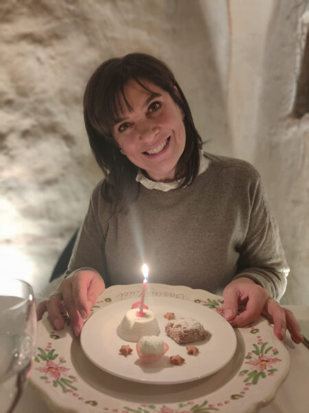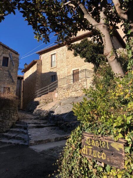 Nel castello si produceva il vino cotto ottenuto dalla bollitura del vino che successivamente viene conservato in botti di legno il cui contenuto non viene mai completamente spillato in quanto si lascia la “madre”, così chiamata perché serve a conferire sapore e aroma al prodotto dell’anno successivo. Lo abbiamo assaggiato insieme al dessert alla fine della cena che abbiamo prenotato nelle belle sale affrescate del ristorante di Castel di Luco in occasione del mio compleanno.