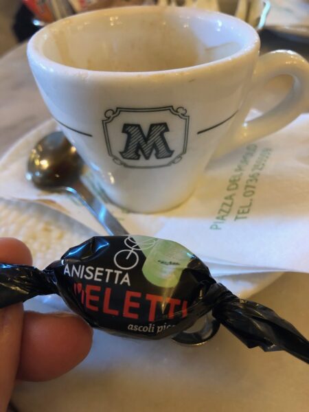 Sulla piazza si affaccia anche lo storico Caffè Meletti, in puro stile Liberty, amato da Sartre e Hemingway: la sosta perfetta per bere un caffè e sorseggiare l’anisetta della casa, prodotta con anice coltivato sulle colline circostanti, insieme al proprio amico 4 zampe che qui è benvenuto.