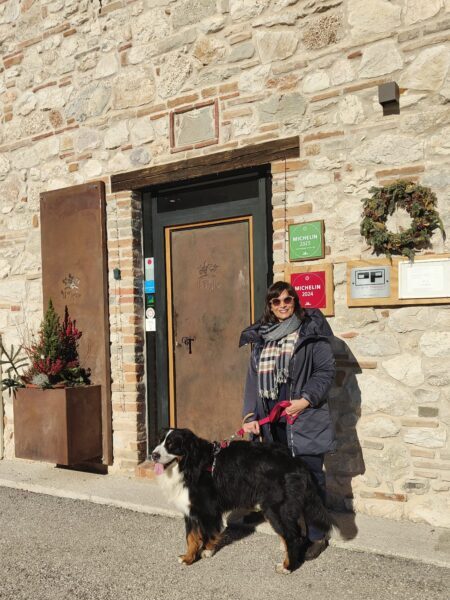 Il giorno dopo per il nostro pranzo ci siamo inerpicati a 932 metri a Isola San Biagio, minuscola frazione di Montemonaco abitata da 22 anime, dove ha sede Il Tiglio, ristorante stellato dello chef Enrico Mazzaroni. Della simpatia e della calda accoglienza dello chef che ha coinvolto anche il nostro Otto che ha trovato in Eloise, la Golden Retriever di casa, una dolce compagna di giochi nonché del sorprendente menu Il Ritorno, vi parleremo in #Buongusto.
