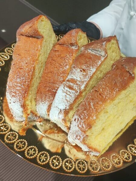 In platea c’eravamo anche noi che abbiamo assaggiato alcune fra le 16 proposte dei panettoni tradizionali, fra le 5 dei pandori e fra le 12 dei panettoni al cioccolato. Unico selezionato per la finale di Mastro Panettone 2024 a rappresentare la Puglia il giovane pasticcere Gabriele Ricchiuto del Forno Casciaro di Tiggiano in provincia di Lecce.