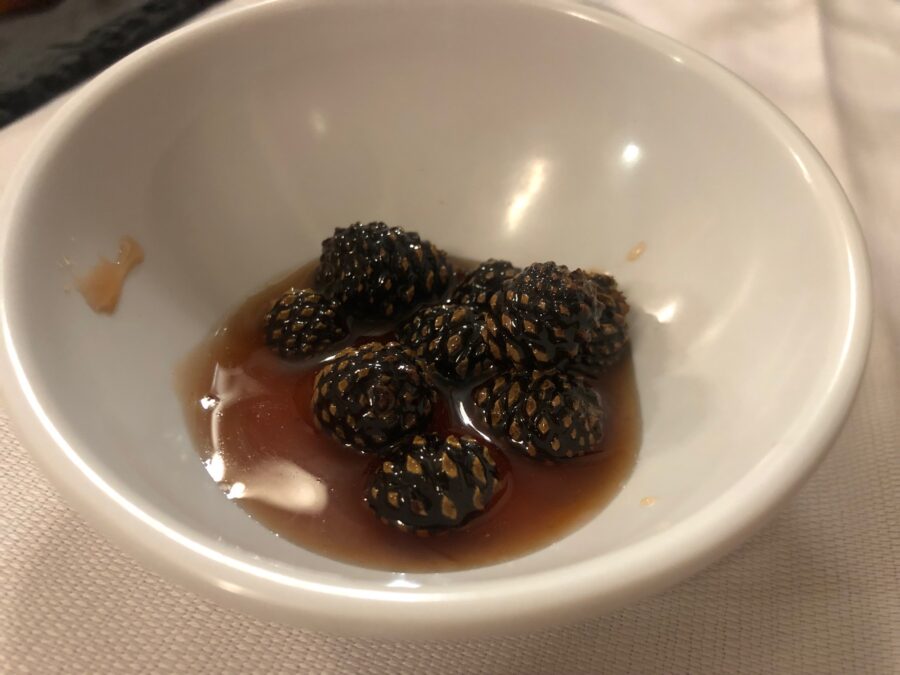 Siamo tornati volentieri a I Rocci che propone una cucina raffinata e inaspettata: avete mai mangiato le pigne? Sì proprio quelle che crescono sulle conifere ma in versione baby e sciroppate!