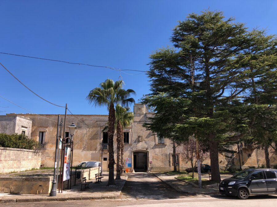 Nel centro del borgo emerge Palazzo Scarciglia, edificio che si estende intorno a un ampio atrio e che in quelli che un tempo erano i magazzini e le stalle a piano terra ospita le sale di Origano Cibo e Vino, osteria-bottega delle Cantine Menhir che fanno capo a Gaetano Marangelli.