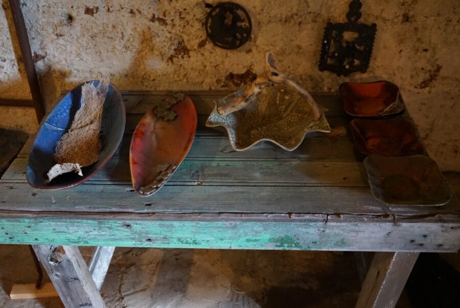 Di ciò che crea ci piace tutto e non è un caso che sia stata inserita tra i 5 migliori talenti del Design ecosostenibile. Davvero difficile scegliere cosa portare via. Per ora abbiamo optato per i meravigliosi fiori in ceramica, scelti anche come centrotavola da Farmacia dei Sani, il ristorante nel centro storico di Ruffano a pochi passi dalla sua bottega, in cui sono esposte anche delle sue creazioni site specific.