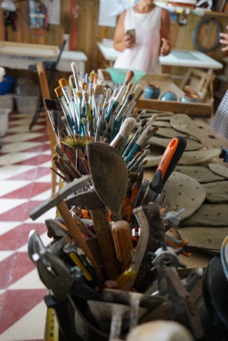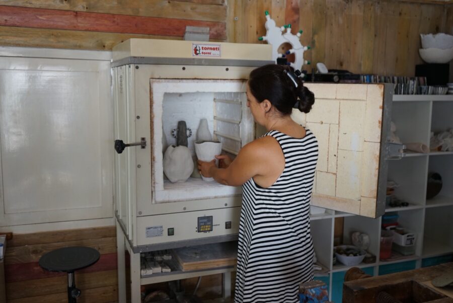 Ascoltandola, anche se parla con molta calma e senza fretta, sembra quasi di essere risucchiati in un vortice. Per cui la domanda sorge spontanea: dove lo trovi il tempo di continuare a dedicarti alla tua produzione artistica, dipingendo e modellando nel tuo laboratorio? E anche di fare da moglie e da mamma a due splendide bambine?