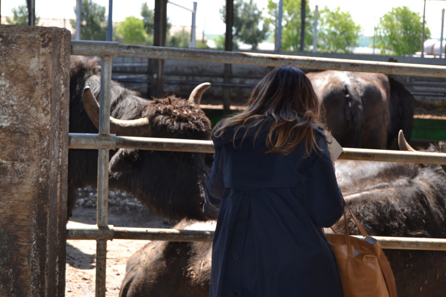 L’ultima esperienza legata a Libando è stata quella di avvicinarmi piano, di farmi annusare le mani e poi di accarezzare sul capo le bufale, scoprendo che questi enormi animali sono sensibili e molto intelligenti: diffidano solo di chi li tratta con ruvidità, ci dice Cristoforo Carrino, dottore in veterinaria e “papà” delle circa 360 bufale nell’allevamento. Più conoscenza diretta di così!