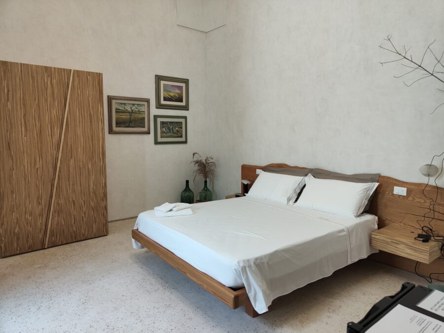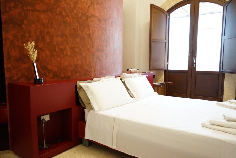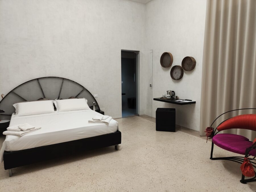Passato e presente sono belli da vivere anche nella camera Terrarossa, in cui come si intuisce subito, il colore predominante è il rosso e ogni cosa all’interno della stanza richiama questa tinta intensa e calda del terreno salentino.