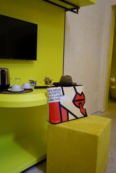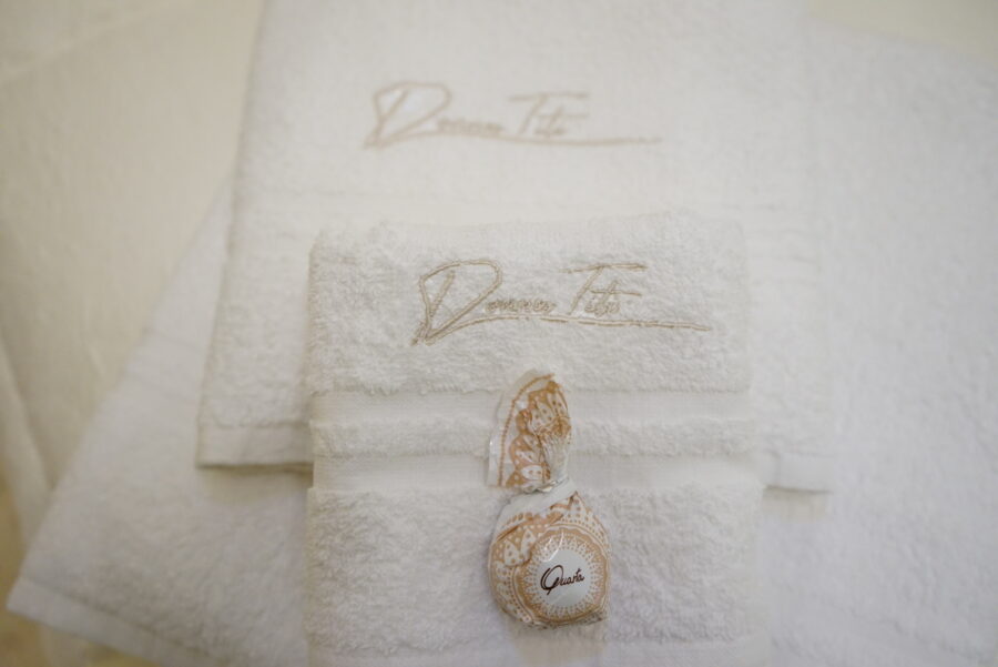 Quindi l’immediata impressione che si ha è quella di entrare in un luogo senza tempo dove passato, presente e futuro si fondono donando alla struttura un valore unico e immutabile nel rispetto della storia che pervade ogni angolo del palazzo. Proprio come unico è il valore che per Monica ha Palazzo Donna Titì, profondamente legato al ricordo della nonna che l’ha cresciuta.