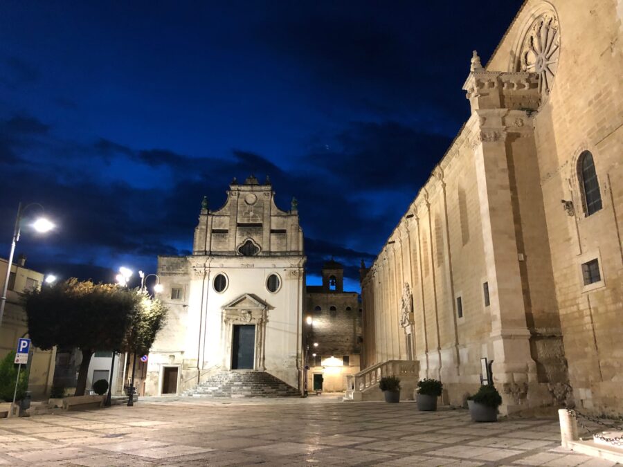La visita è proseguita con la Basilica Cattedrale e il Museo Fondazione Santomasi, dove si rimane ammirati dalle ricche sale in cui è allestita una mostra di raffinati abiti di varie epoche e dalla ricostruzione della chiesa rupestre di San Vito Vecchio al pianterreno, in cui è ospitata anche una interessante collezione di maioliche locali e di Laterza.
