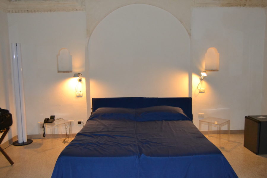 L’hotel gode di un affaccio panoramico mozzafiato e una delle camere con la vista più bella è la Junior Suite che ci è stata assegnata. Stando sdraiati sul letto non ci si stanca mai di guardare al di là della finestra e ci si sente come sospesi tra il Duomo e il Sasso sottostante.