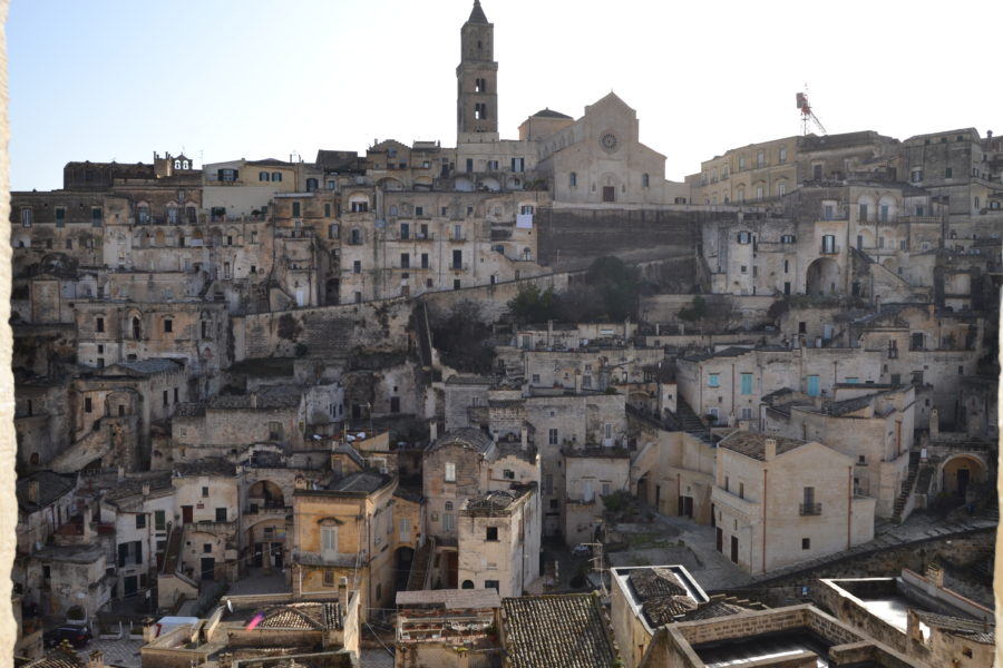 Il panorama è bello a ogni ora del giorno ma è al tramonto il momento più suggestivo, quello in cui i Sassi danno spettacolo tingendosi prima di rosa e poi di rosso, con la Cattedrale che si staglia sullo sfondo sfolgorando d’oro. Poi cala la sera e muretti, scalinate e “vicinati”, come vengono chiamati i gruppi di case intorno a una piccola corte, luccicano come un grande presepe.