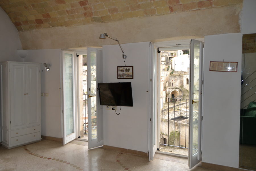 Nella nostra suite, oltre alla magnifica vista e al terrazzino sul quale godere del caldo sole che il soggiorno materano ci ha riservato, tutti i comfort per garantire un piacevole soggiorno: riscaldamento/aria condizionata, collegamento wi-fi gratuito, telefono, minibar, phon, set da bagno e tv con schermo piatto.