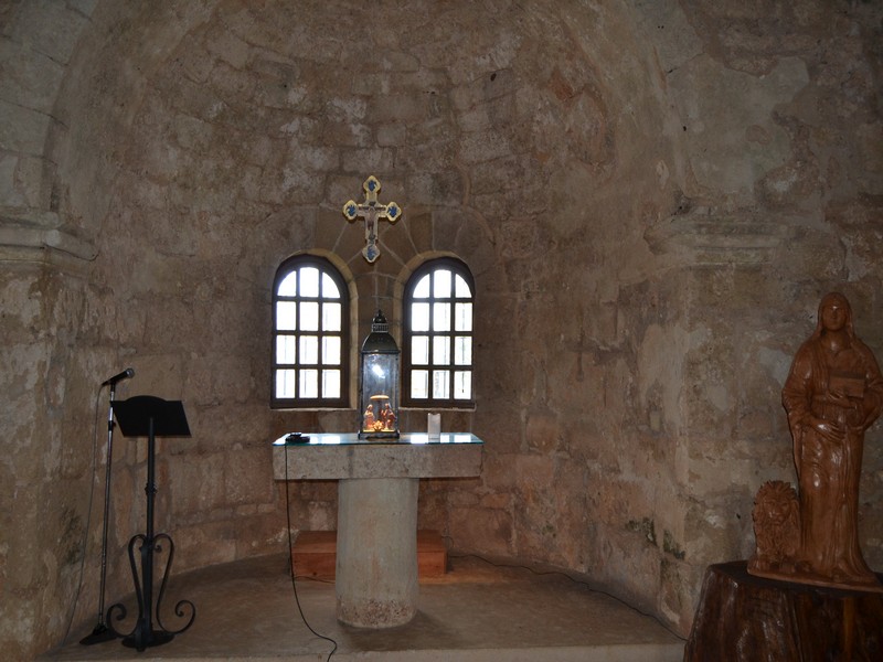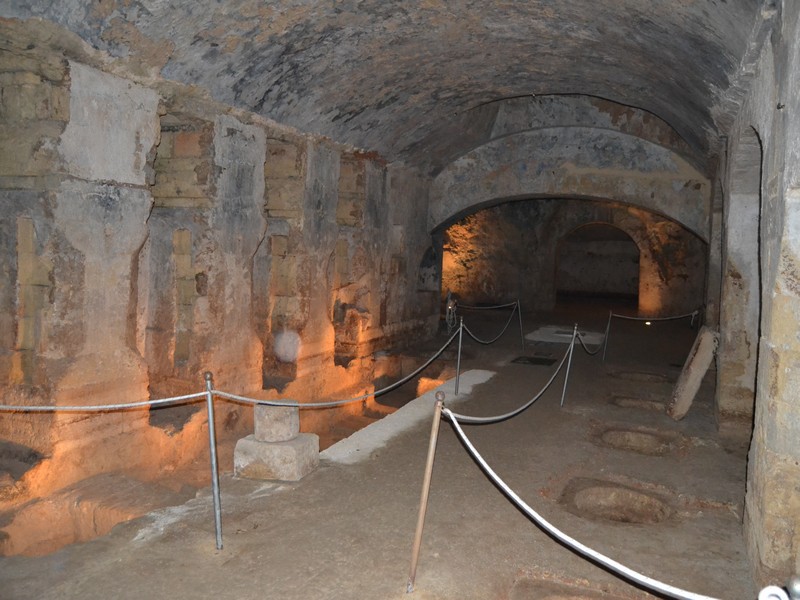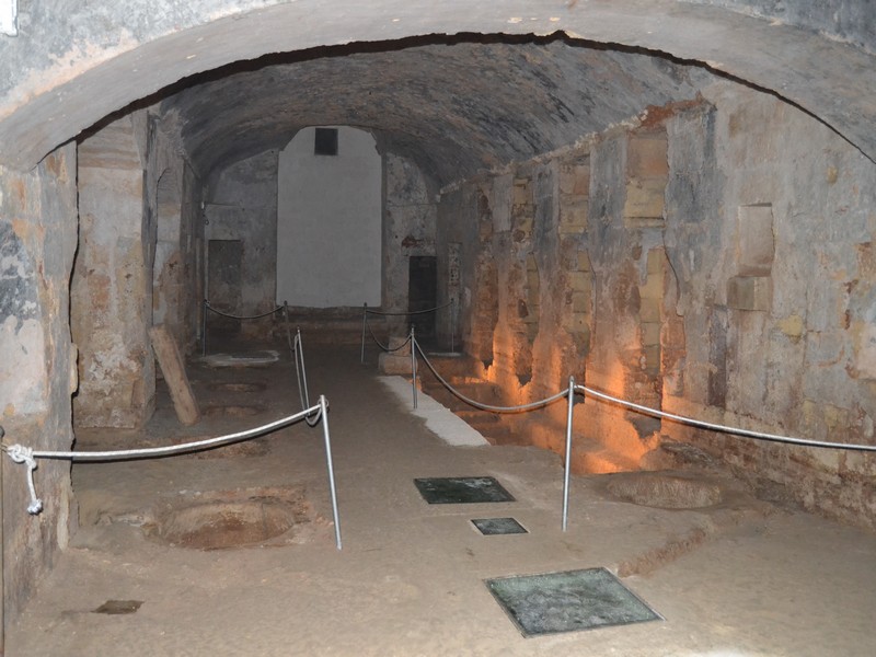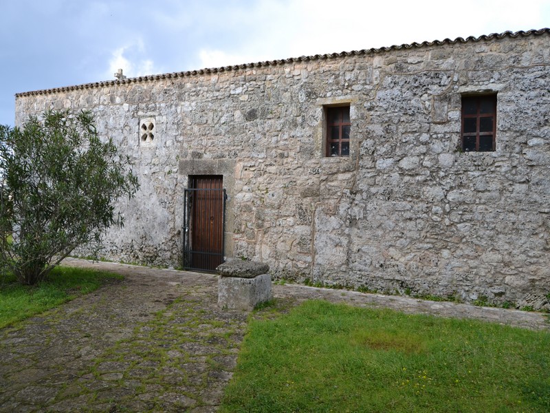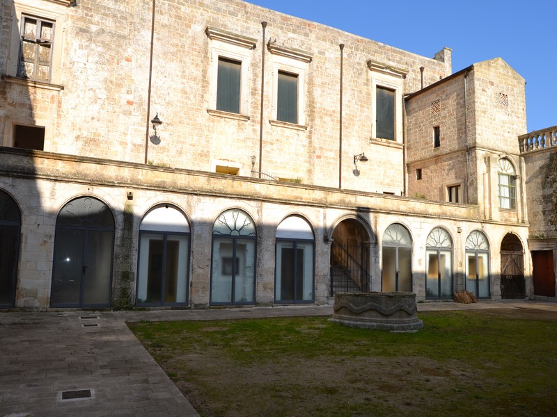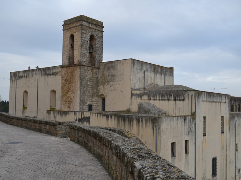 Al suo interno notevoli la cappella affrescata di Santa Caterina, la cripta sorretta da 36 colonne che ricorda quelle di Otranto e di Bari e il frantoio ipogeo con i suoi torchi alla calabrese.