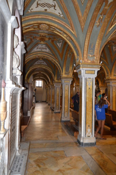 Scendendo le scale sulla destra, chiusa da una grata in ferro, si trova la colonna “miracolosa” in porfido rosso, che da secoli attira la devozione dei pellegrini convinti delle sue virtù taumaturgiche.