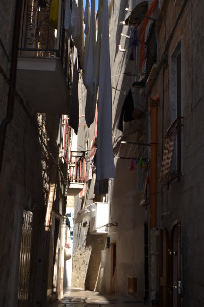 Prima è d’obbligo passare per la strada più stretta di Bari Vecchia chiamata anche il vicolo del “bacio” nei pressi dell’edicola di Santa Lucia.