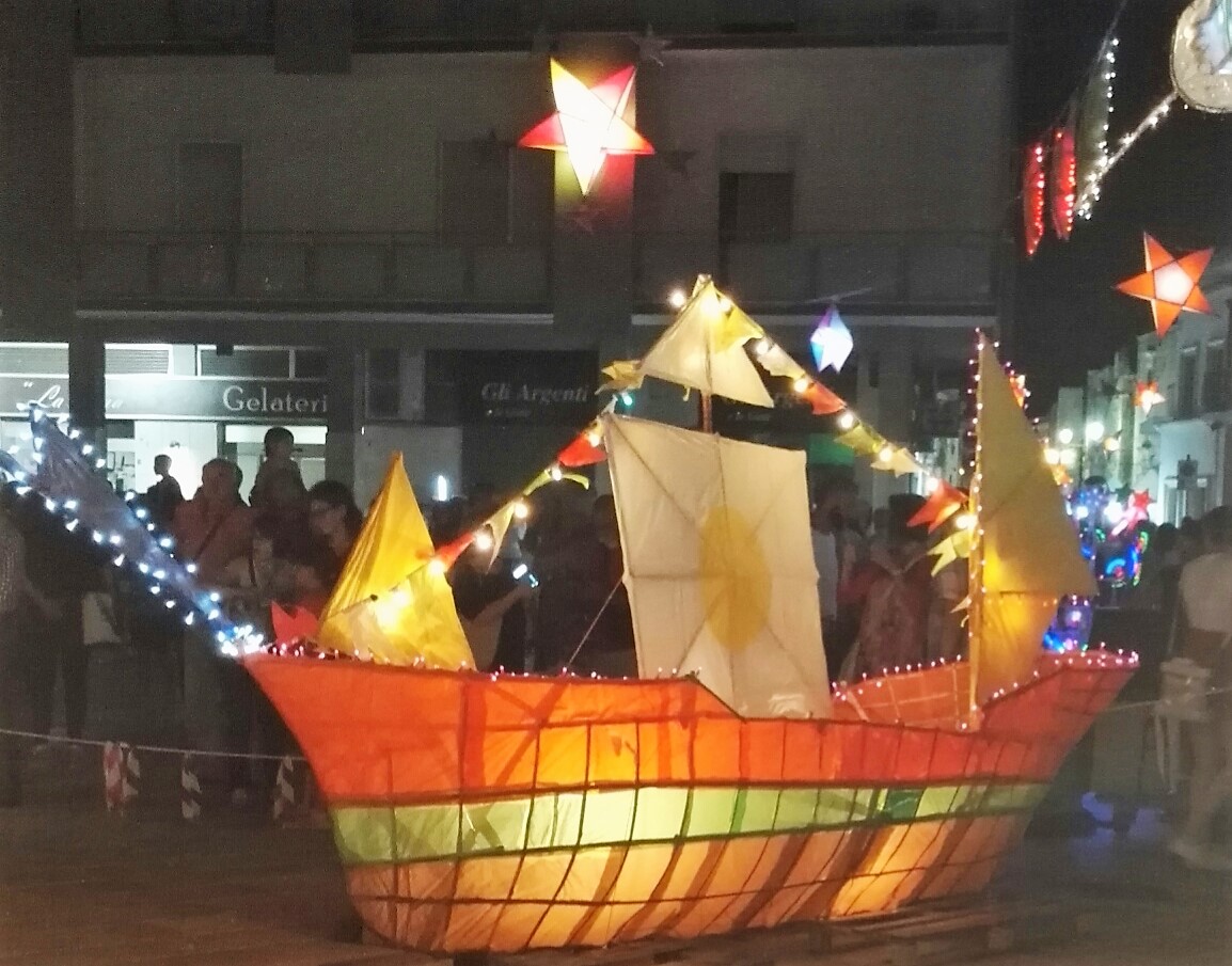 I Lampioni sono vere e proprie sculture luminose, create da artisti che lavorano con materiali poveri, secondo quanto detta la tradizione e vengono appesi per le strade del centro storico che acquista così un’aria da paese delle meraviglie.