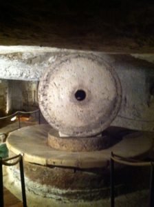 Scopriamo con stupore ed emozione che questo frantoio, uno dei più antichi della provincia, fu scavato nel XV secolo durante il feudo degli Acquaviva che oltre che Duchi di Nardò e Conti di Conversano, la nostra città, furono anche Baroni di Sternatia. E le emozioni non finiscono una volta entrati negli ambienti sotterranei del frantoio. Vi si immagina il sudore, la fatica di uomini e di animali, la vita vissuta qui sotto da intere famiglie: c’è perfino un vano destinato alla consumazione dei pasti con sedili e tavolo incisi nella pietra.