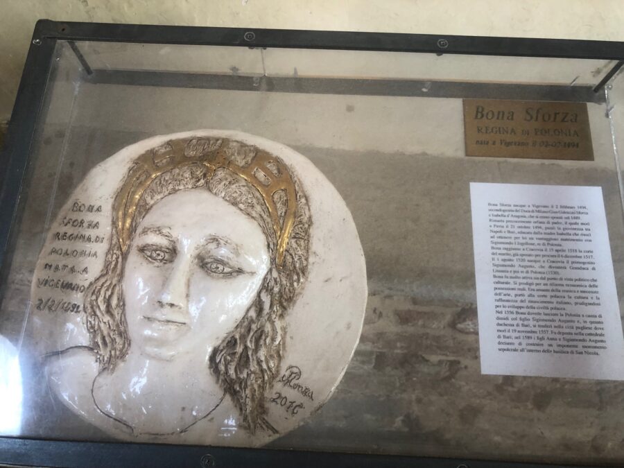 Il legame tra Vigevano e il capoluogo pugliese è rappresentato da una donna, la grande regina rinascimentale Bona Sforza. Vissuta tra le migliori corti europee del tempo, la sua influenza sui costumi ma anche sulla politica ed economia di quegli anni può essere paragonata a quella che ebbero altre grandi donne italiane come Caterina de’ Medici in Francia ed Eleonora Gonzaga in Austria. Come loro dimostrò di avere eccezionali doti di adattabilità, una grande disponibilità a viaggiare e capacità di adattamento a luoghi diversi da quelli di appartenenza come la Polonia di cui divenne regina.