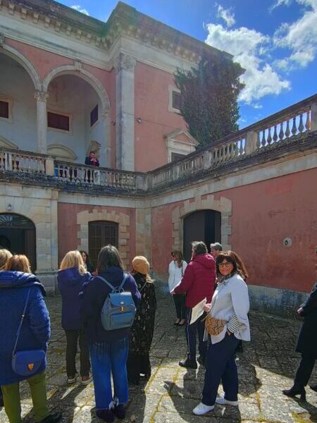 Il percorso guidato post conferenza ci ha consentito di scoprire questa antica dimora ammirandone il singolare prospetto e la bellezza delle sale, conoscendone la storia, legata alla città di Noci sin dal ‘500 quando, proprio in corrispondenza della villa, sorgeva un convento domenicano. Successivamente l’edificio abbastanza malridotto fu acquistato dalla famiglia Lenti che vi fece costruire la raffinata villa che oggi possiamo ammirare.
