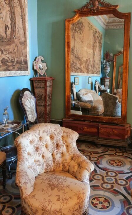 Visitandola stanza dopo stanza, ci si rende conto che Villa Lenti è una dimora gentilizia di notevole pregio architettonico. L’interno conserva l’arredo ricercato e le finiture di pregio dell’epoca: boiserie in finto marmo, raffinate volte affrescate, rivestimenti in preziosa carta da parati, stucchi decorativi. Originali sono anche i candelabri, gli arazzi, i mobili intagliati e scolpiti in legno, le porte a riquadri e gli splendidi pavimenti in cementine del primo Novecento. Magnifici i lampadari di Murano che testimoniano i frequenti contatti della famiglia con la città di Venezia.