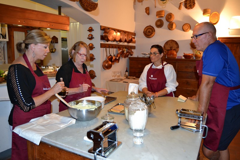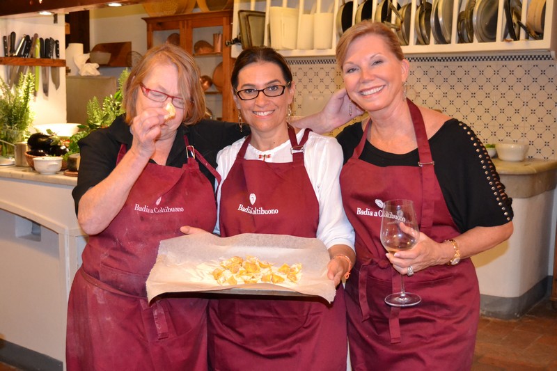 Noi siamo stati coinvolti nella emozionante esperienza di imparare a preparare la schiacciata toscana con la ricetta di una fiorentina doc come la chef Benedetta Vitali, fondatrice del ristorante il Cibrèo con Fabio Picchi nel 1979 e dello Zibibbo nel 1999. Autrice di diversi libri di cucina, in Italia e negli Stati Uniti, Benedetta ha preso il posto di Lorenza de Medici, la mamma di Emanuela, Paolo e Roberto Stucchi Prinetti che oggi si occupano dell’azienda in toto. Nel 1980, la signora Lorenza fondò la scuola di cucina di Badia a Coltibuono, una delle prime in Italia e cominciò a scrivere e pubblicare libri di cucina in inglese e tedesco. La sua notorietà crebbe moltissimo con il serial di 14 puntate realizzato per il canale televisivo statunitense P.B.S. dal titolo “The de’ Medici Kitchen”.