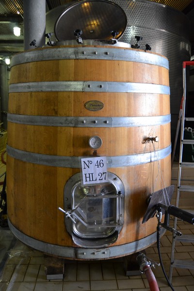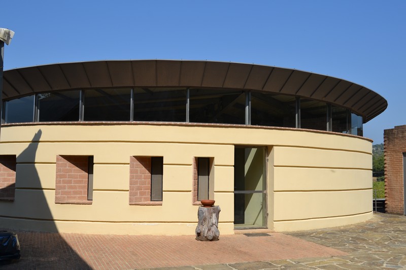 Accompagnandoci tra i filari Giandomenico ci ha spiegato che il mantenimento della salute delle viti, punto di partenza della produzione biologica, si basa su inerbimenti controllati che aumentano la componente organica del terreno, frenano l’erosione e rendono le piante più resistenti alle malattie. Secondo la tradizione le piante vengono sostenute con pali di castagno locale e concimate con prodotti rigorosamente organici, mentre cinghiali e caprioli vengono mantenuti lontani dai grappoli che attendono la vendemmia da fili elettrici a basso voltaggio. Il nostro giro è proseguito verso la cantina, una moderna fortezza “rinascimentale”, progettata con Piero Sartogo e Natalie Grenon, che hanno voluto costruire un percorso idoneo per la vinificazione “dolce” delle uve appena vendemmiate, sfruttando il principio di gravità.
